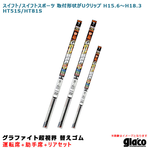 - ガラコワイパー 超視界 替えゴム 車種別セット スイフト/スポーツ 取付形状Uクリップ H15.6~ HT51S/HT81S 運転席+助手席+リア ソフト99