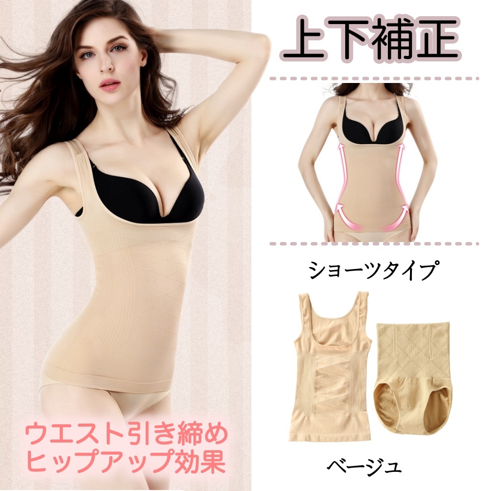 - 送料無料★即納 上下セット 補正下着 ウエストシェイプ ヒップアップ タンクトップ バストアップ ★ショーツタイプベージュ/M-L