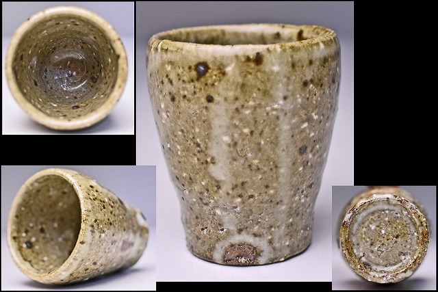 > 金城宙矛 ★ 灰釉 ぐい呑 ★ 沖縄 新進気鋭の名工 ★ 小品ながら腰から細い造形は手取り良く釉景の美しい逸品 ★ 酒器 ★