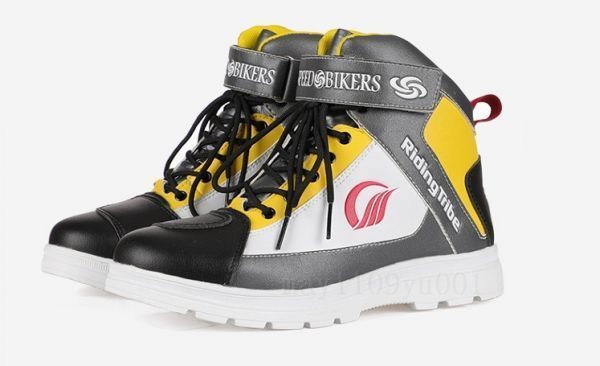 > SALE! ライディングシューズ メンズ 靴 レーシングブーツ 合革 安全 フェイクレザー バイク用ツーリング イエロー43 [ サイズ 色 選択可 ]