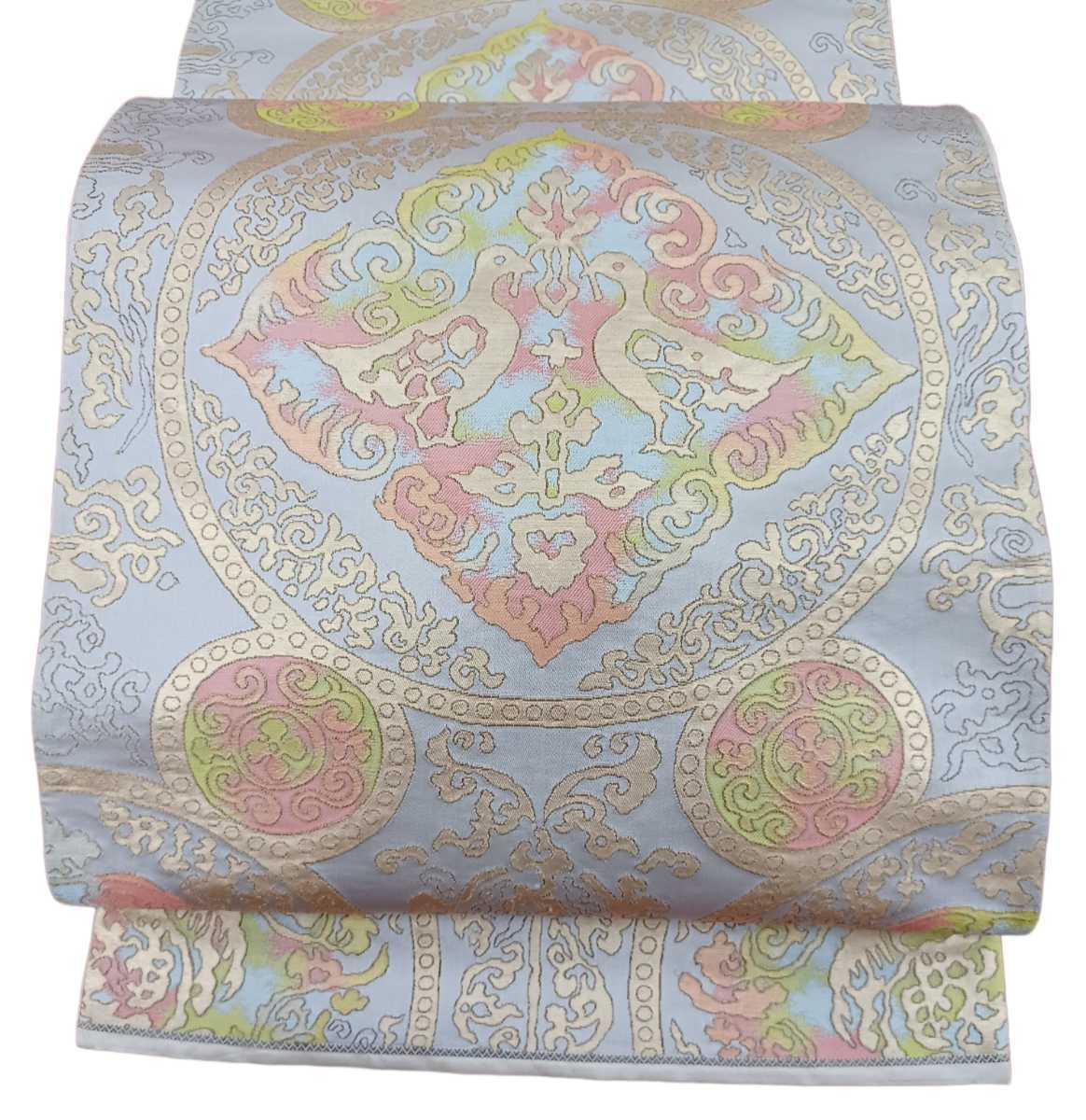 > 岩-帯121)帯 袋帯 成人式 卒業式 式典 和装小物 着物 訪問着 お洒落 華やか グレー ゴールド 豪華絢爛 221125