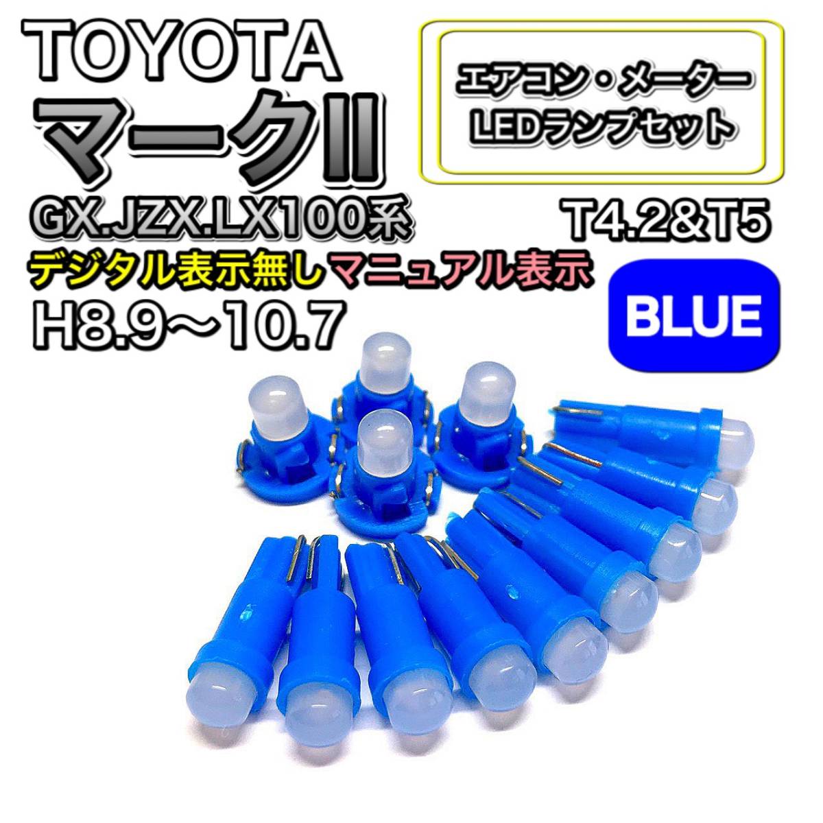- マークⅡ GX.JZX.LX100系 マニュアル表示 打ち換え LED エアコン・メーターランプセット T4.7T5 T4.2 T3 ウェッジ トヨタ ブルー
