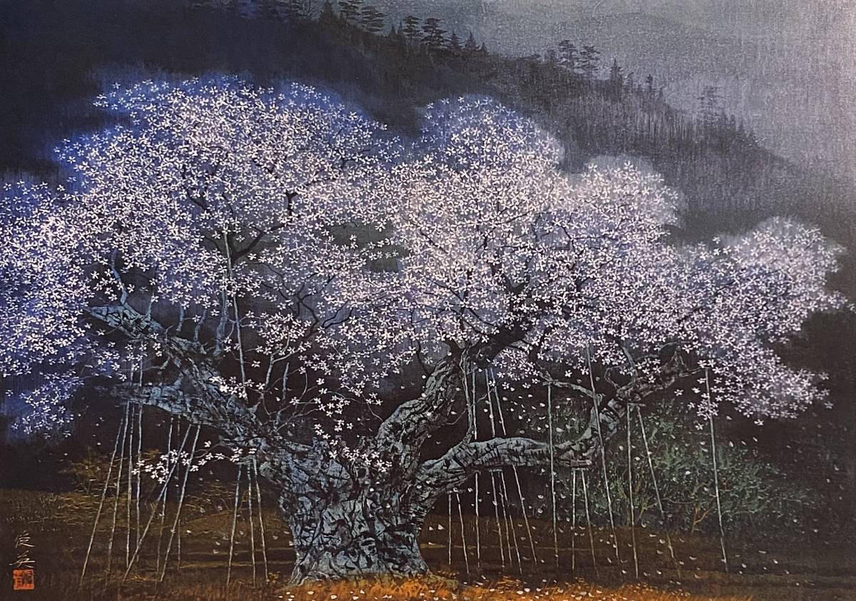 - 西田俊英、〈淡墨桜〉、希少画集画、高級新品額・額装付、状態良好、送料無料