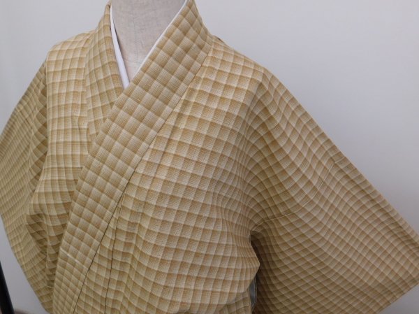 - 紬 真綿紬袷 チェック柄和モダンdt 楽布特選P7281
