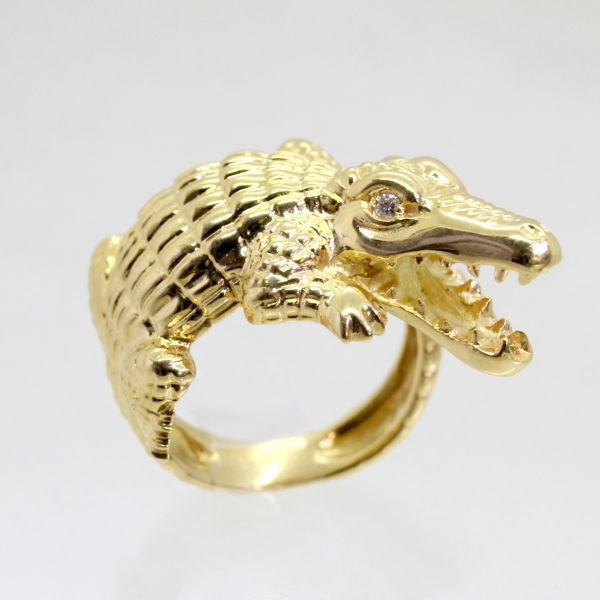 - ◎中古美品◎18金 ダイヤ付 ワニデザイン リング 11号