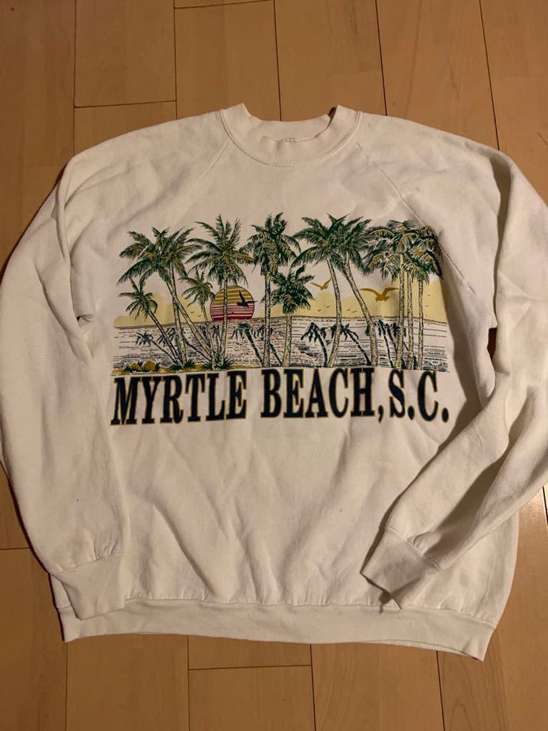 > 90's【Fruit of the loom】USA製フルーツ オブ ザ ルーム ラグラン スウェット XL ビンテージ 両面プリントホワイト系 MYRTLE Beach
