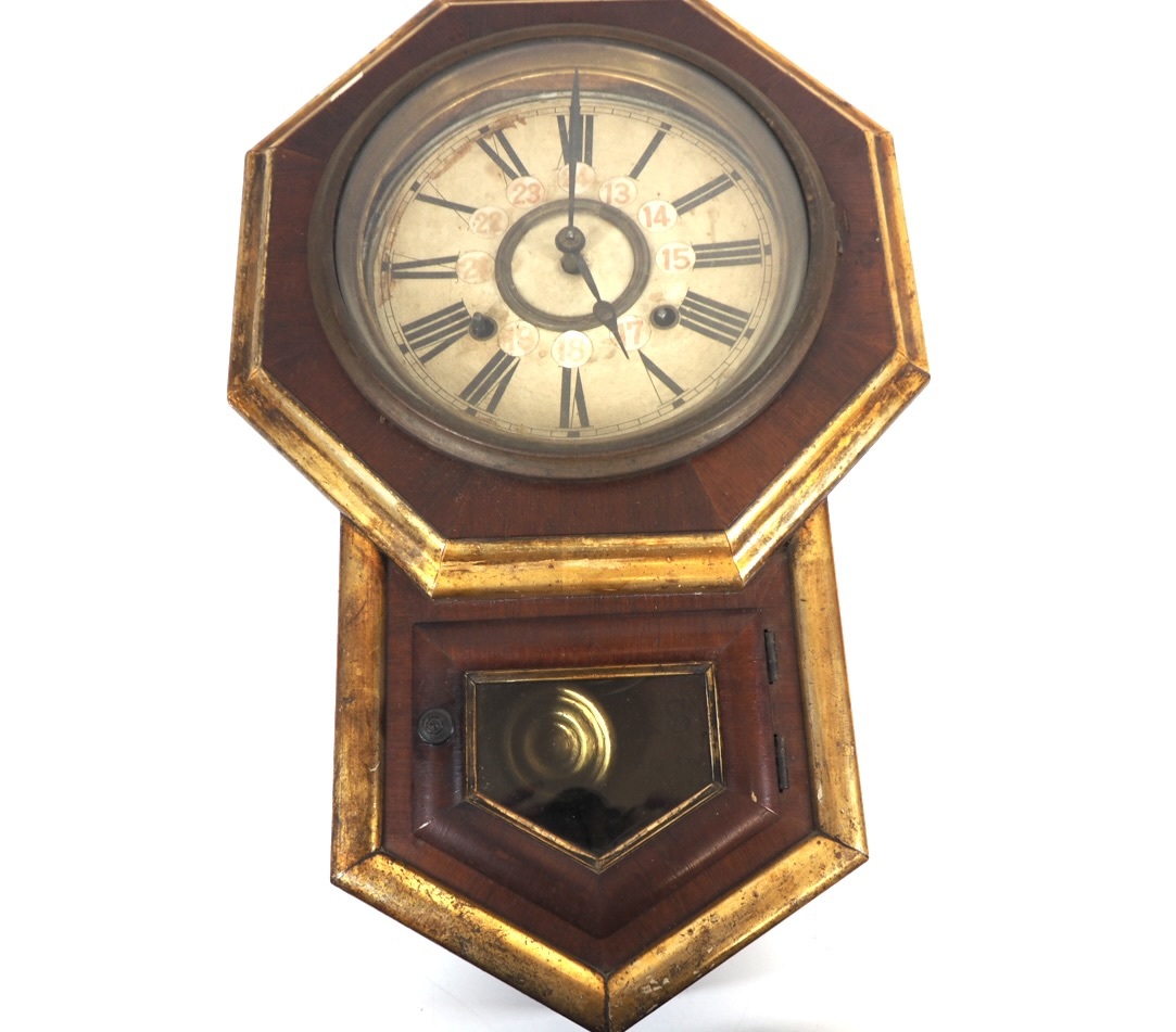 - 1890年代 アンティーク E.N. WELCH社製 アメリカン ウオールクロック 木製振り子掛時計 不動品(要修理) 雰囲気のあるアンティークアイテム