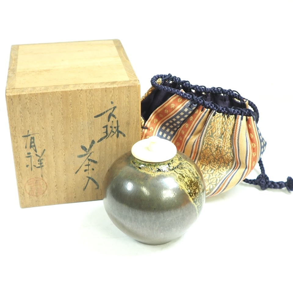 > 昭和ビンテージ 茶道具 京焼 文琳茶入 笹田有祥作 共箱付き 直径6cm 高さ7cm 焼き目が美しい逸品です! KYA412