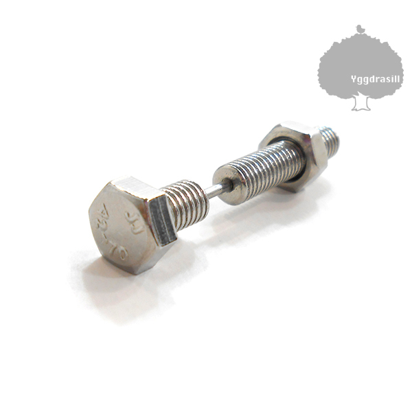 > YGG★新品 ボルト モチーフ ピアス シルバー ナット 銀 ネジ 大きめサイズ ロング ボディピアス 韓流 1個 片耳 メンズ レディース シルバー