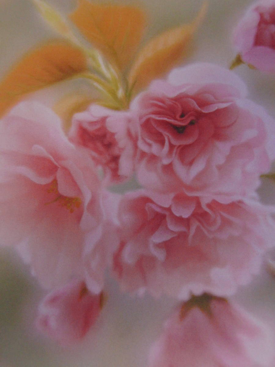 - 山地司、【八重桜 関山1】、希少な額装用画集より、状態良好、新品額装付、送料込み