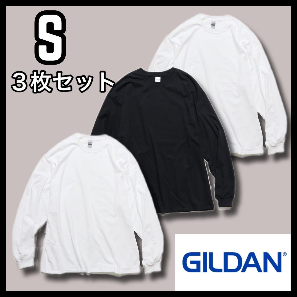 - 新品 ギルダン 6oz ウルトラコットン 無地長袖Tシャツ白黒3枚セット S