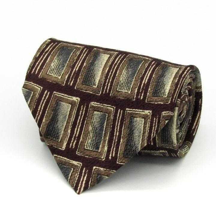 - レノマ 総柄 スクエア 高級 シルク イタリア製 ブランド ネクタイ メンズ ブラウン 良品 renoma