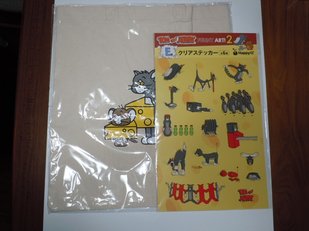 - トムとジェリー Happyくじ C賞コラボレーショントートバッグ&E賞クリアステッカー 未開封品