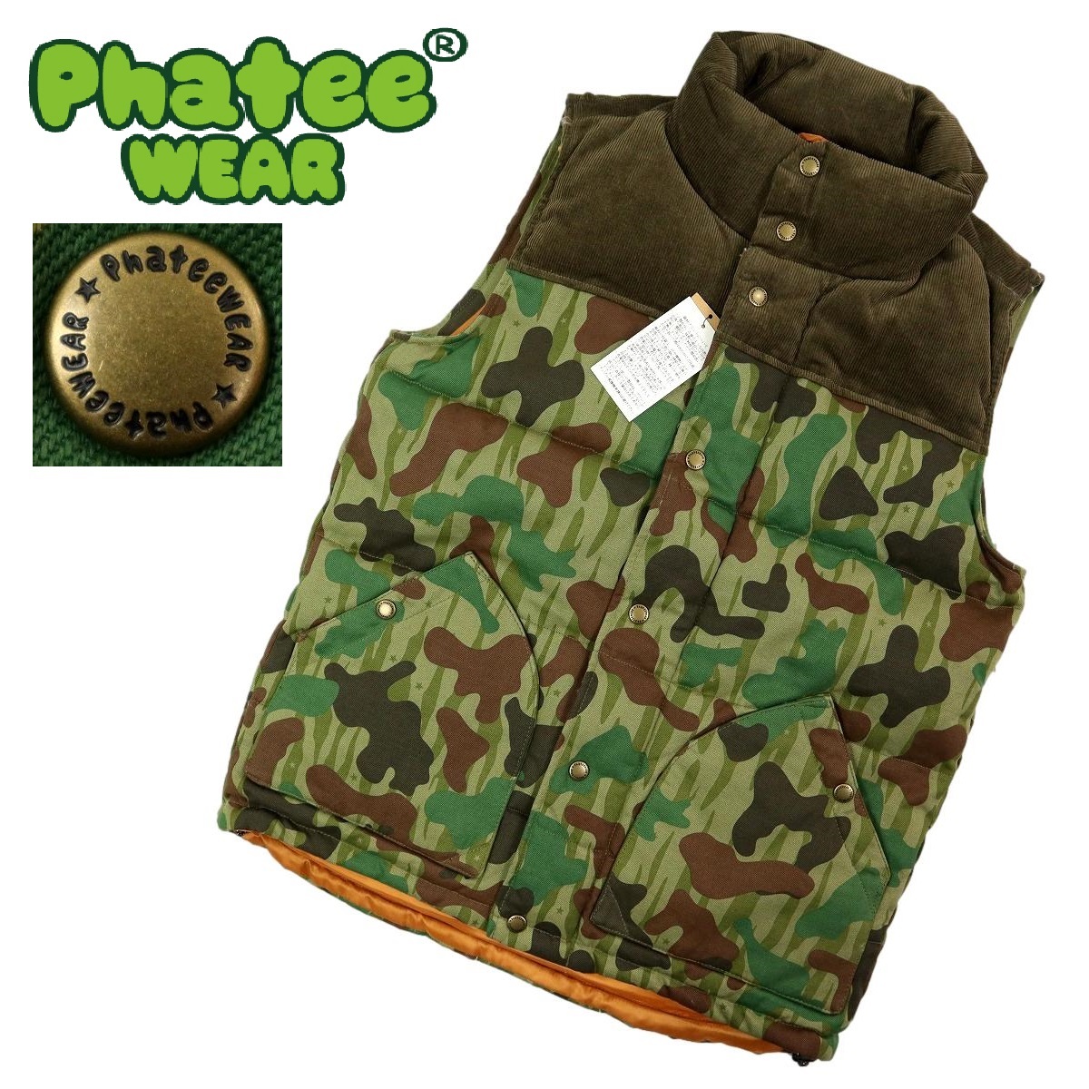 - 【B1963】【新品】PHATEE ファッティー 中綿ベスト カモフラージュ 迷彩 アウトドア サイズM