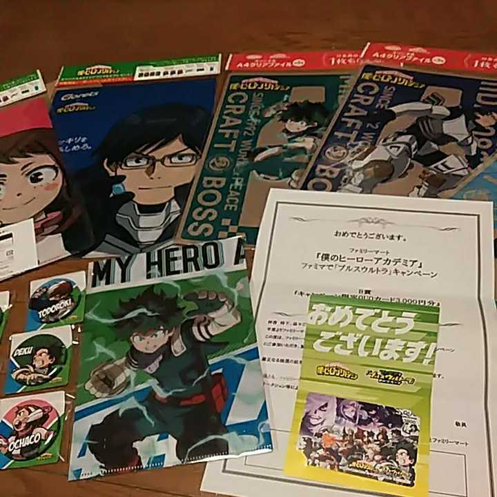 - 即決! 当選品 ヒロアカ(僕のヒーローアカデミア)×ファミマ クオカード(3000円)&クリアファイル&缶バッジ