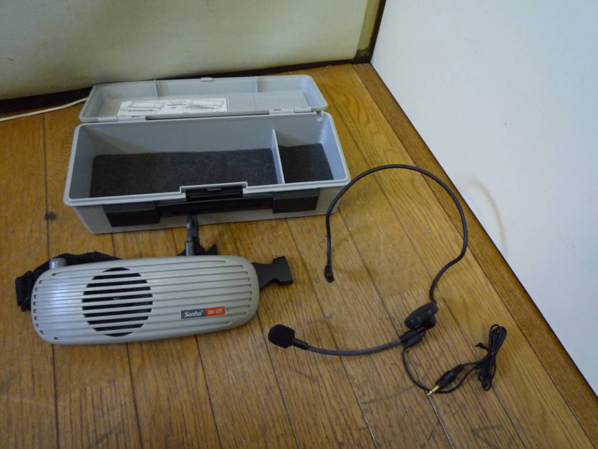 > ◇中古 良品 ハンズフリー拡声器 5W インカムマイク付 アンプ内蔵 拡声器 SH-121 白 SH121 検索 会議 講義 店頭販売 司会 案内 工場案内