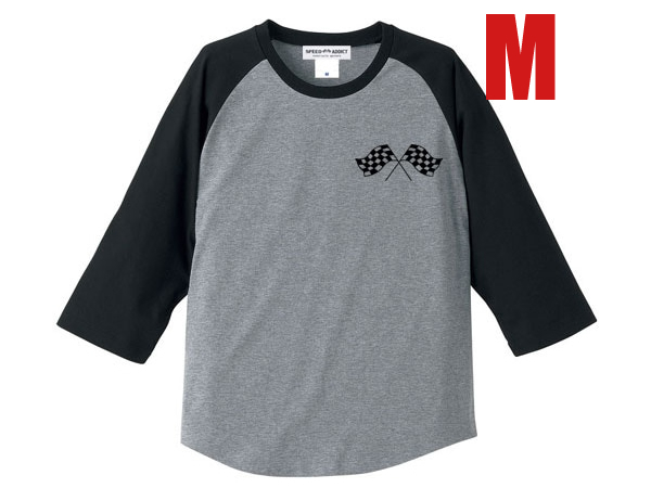 > CHECKER FLAGS Raglan 七分袖 Tシャツ GRAY×BLACK M/チェッカー柄モーターサイクルモトクロスバイクライダーオートバイオールドスクール