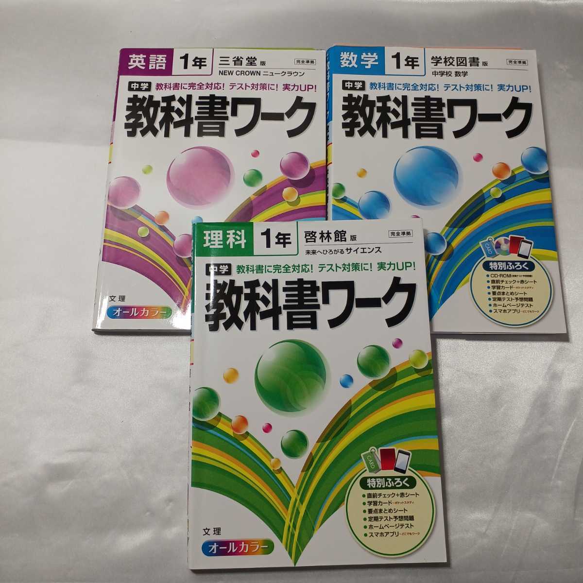 - zaa-412♪中学教科書ワーク 英語1年CD付(三省堂版 NEW CROWN) /数学1年CD付(学校図書版)/理科1年(啓林館版)3冊セット 文理