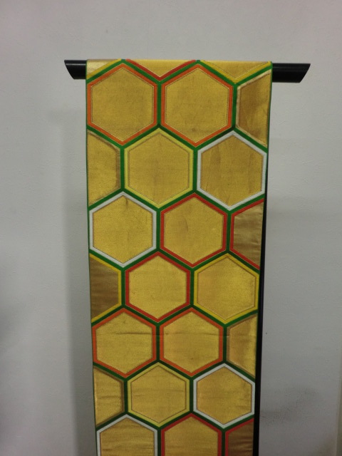 - ◎袋帯 亀甲柄 正絹 テーブルセンター タペストリー 細工物付きリメイク品☆a8