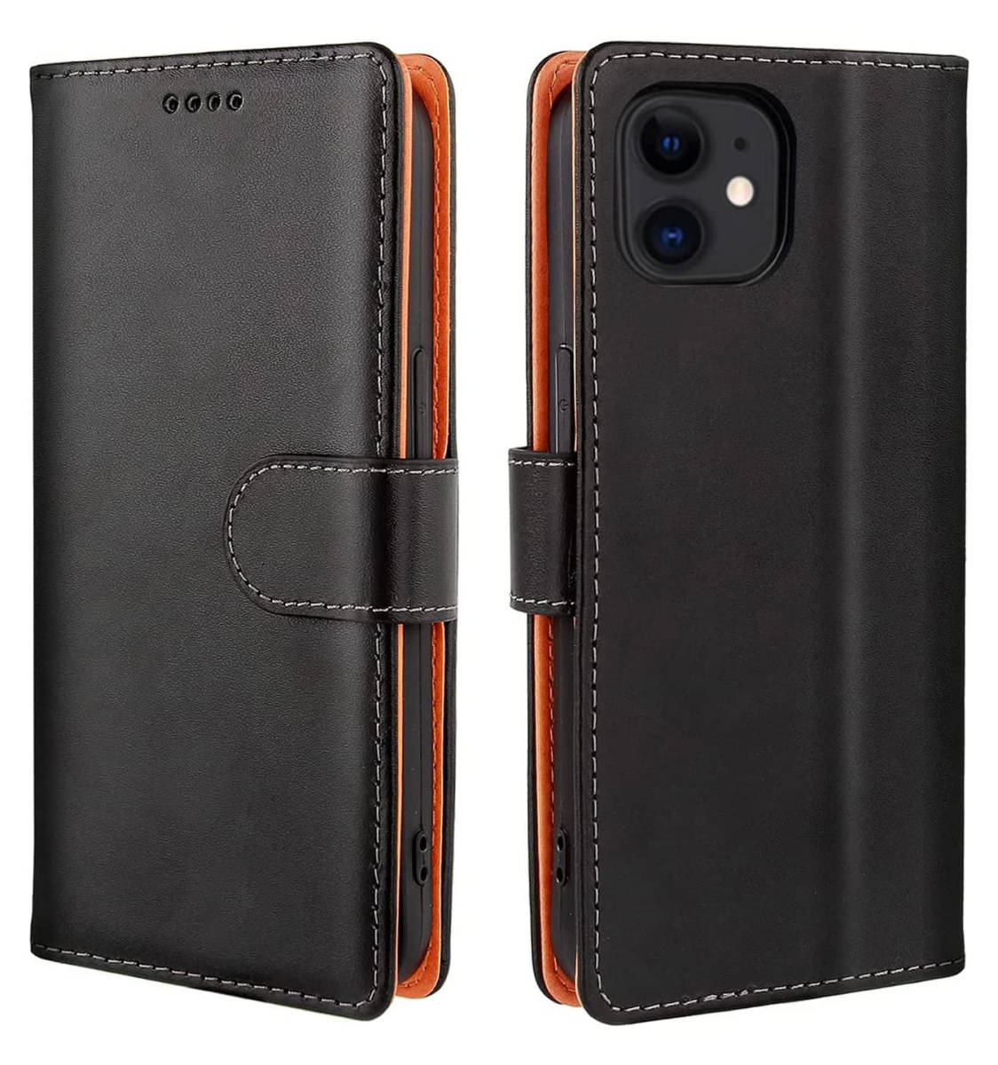 - iPhone 11ケース 手帳型 マグネット式 カード収納 スタンド機能 手触りが良い フェイクレザー ブラック ay317