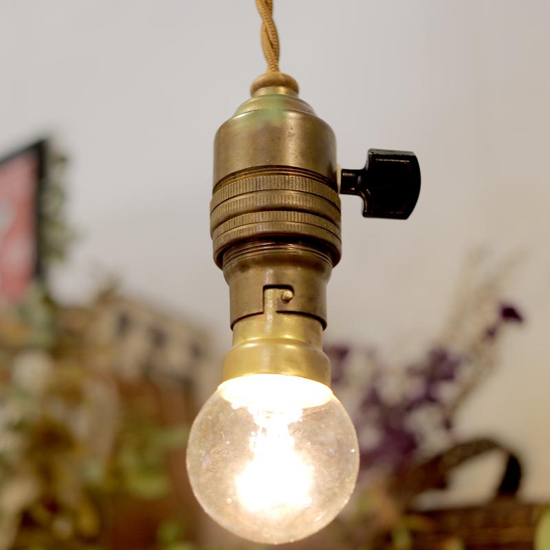 > 1910-50年代 スイッチ付 真鍮 吊り下げ ソケット ランプ フランス アンティーク R*/北欧 照明 磁器 イギリス カフェ 店舗 アトリエ ライト