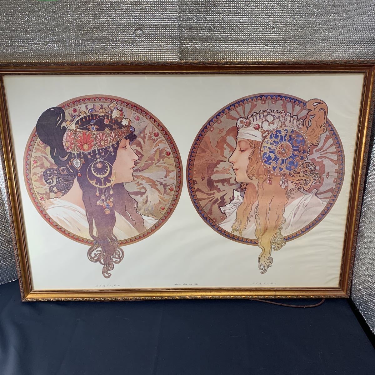 - ★大阪堺市/引き取り可★額縁 フレーム 木製 ミュシャ レプリカ 約94.5cm×65.5cm 壁掛け 飾り 美術品 コレクション インテリア★