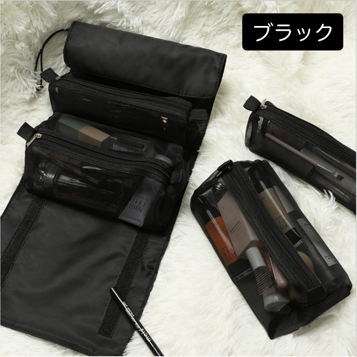 - 送料無料★即納!取り外せる メッシュインナー メイクブラシケース コスメケース メイクポーチ コスメ収納 ★ブラック