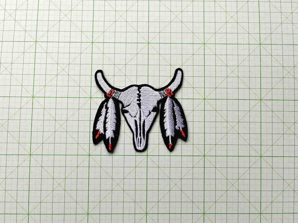 - //*★ ドクロ ワッペン ガイコツ 牛 COW インディアン スカル 先住民 ★ アイロン接着OK