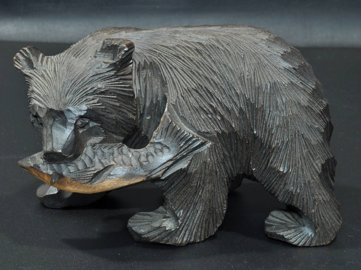 - 【義】 美術工芸 北海道名産 木彫 鮭を咥えた熊 ミニサイズ 箱なし 卓上インテリア 小物インテリア S60