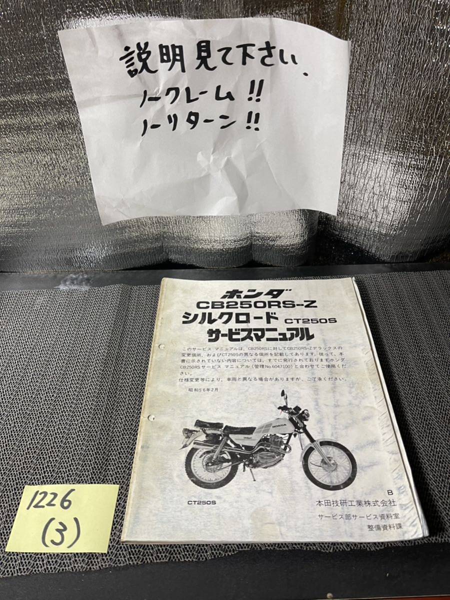 - HONDA/ホンダ サービスマニュアル CB250RS-Z CT250S シルクロード