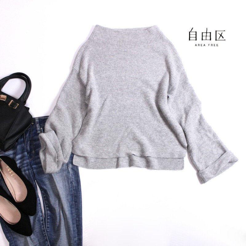 > 美品 厚手 ジユウク 自由区 株) オンワード樫山 ■ 冬 あったか ボトルネック ラメ混合 プルオーバー セーター グレー 38 9号
