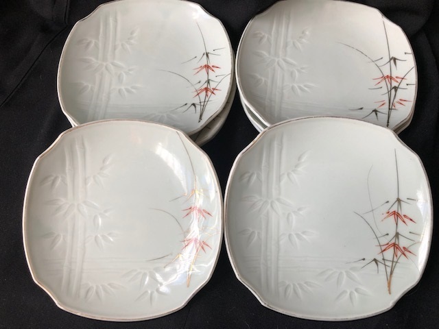 - 中皿 皿 竹 浮き彫り 金彩 8枚 昭和 古い 15.8.cm