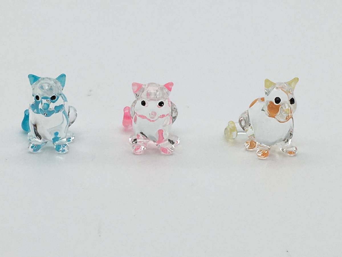 - 【2004】ガラス細工 猫 紫 黄 ピンク 三点セット *【979101000023】