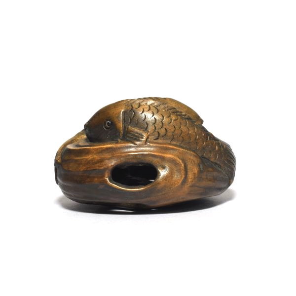- 根付 魚 渦 柘植 木彫品 木製 彫刻品 na07-k-19