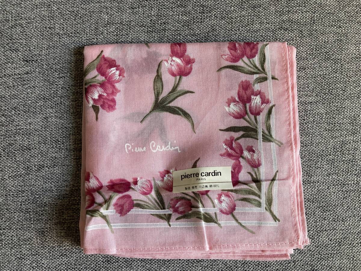 - ★未使用 ピエールカルダン pierre cardin ハンカチ ピンク チューリップ 花柄 婦人 レディース 川辺