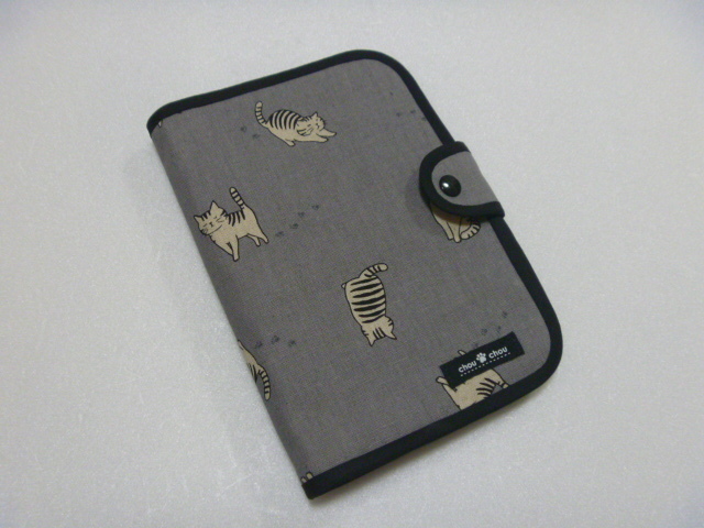 - 送料込み! トラ猫&足跡柄 お薬手帳&診察券ケース グレー 通帳ケース 再販
