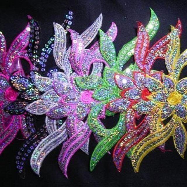 - 花 2 スパンコール 1枚 色選択 ワッペン アイロンのり 新体操