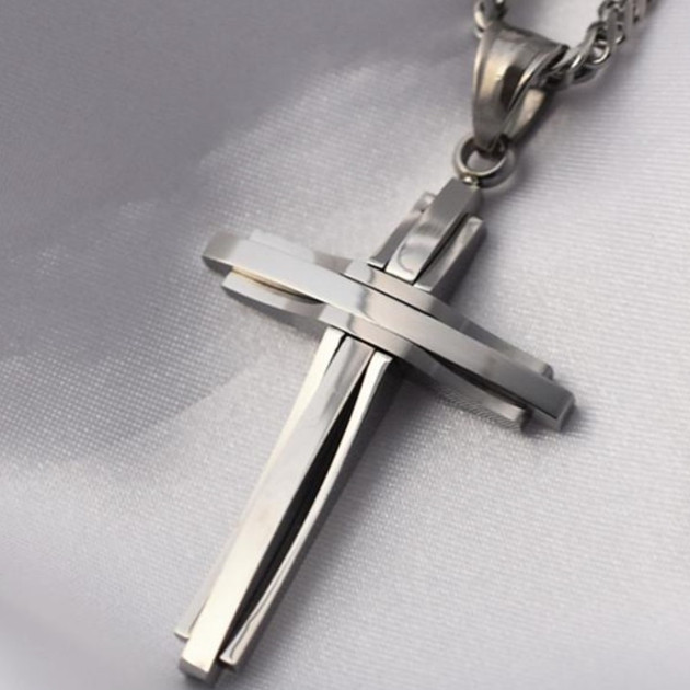 - ステンレス クロス 十字架 W喜平チェーン デザイン ネックレス