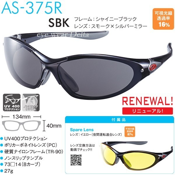 - AXE アックス スポーツサングラス サイクリング マラソン スペアレンズ付 AS-375R-SBK