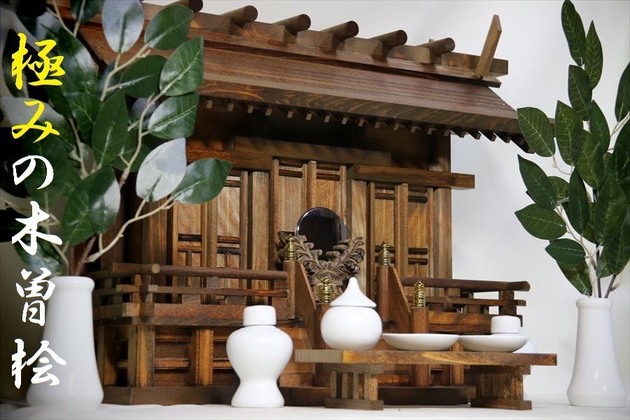 - 神棚 モダン × 木曽桧 富士 別宮 横幅 65cm 極上 通し屋根三社 神具付き 神棚セット 胡桃 家具調モダン神棚