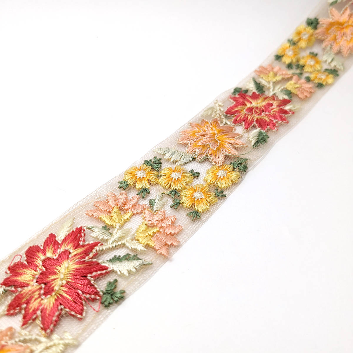 - インド刺繍リボン 約38mm メッシュホワイト BE018