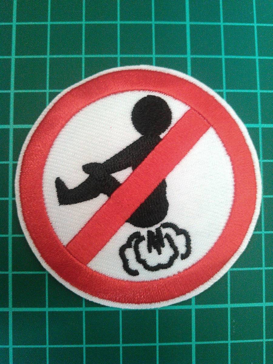 - 放屁禁止 ワッペン アップリケ 70mm×70mm 検) 作業着 補修 デコレーション 帽子 鞄 ジャケット ジョーク商品