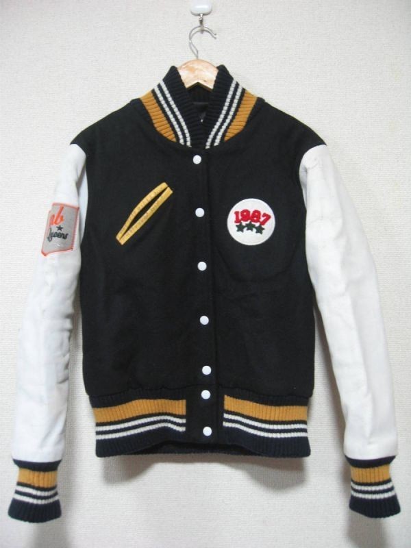 - 00's PNB QUEENS 袖革スタジャン 牛革 カウレザー size S ブラック Y2K