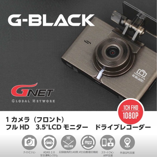> 送料無料(一部地域を除く) 1カメラ ドライブレコーダー G-BLACK フロントカメラ G NET フルHD 3.5インチLCDモニター 常時録画 駐車監視