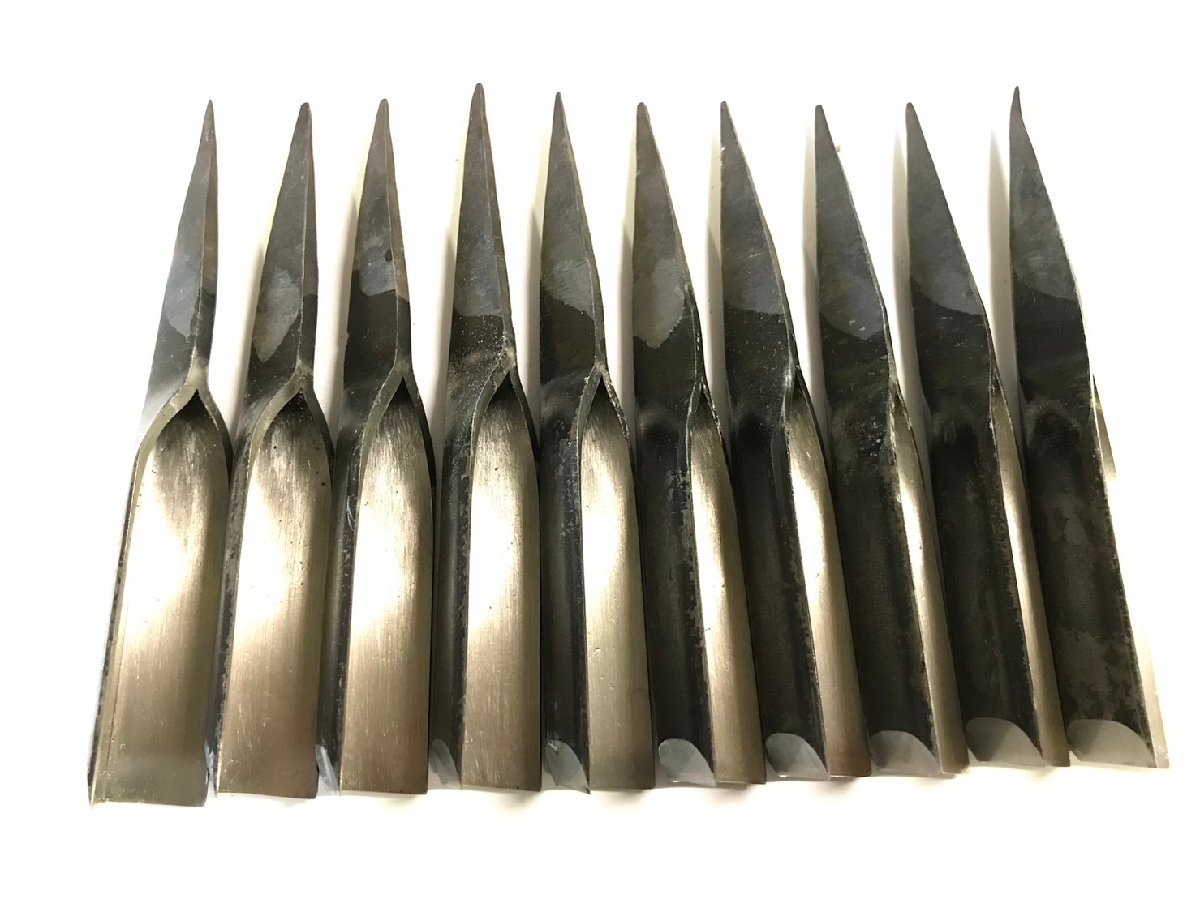 - ■送料無料■ 未使用 長期保管品 仙洞 在銘 三角刀 彫刻刀 のみ 鑿 刃 10本セット 17mm 全長131~134mm r8/SR19