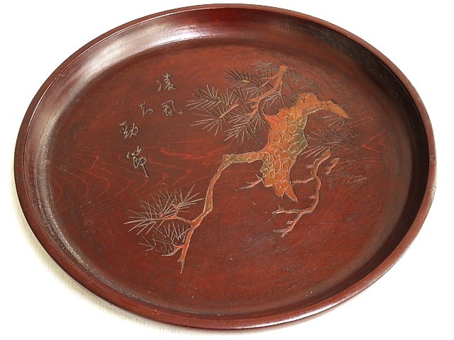 - 煎茶道具 茶盆 刳抜盆 松 木彫彫刻 煎茶盆 茶道具