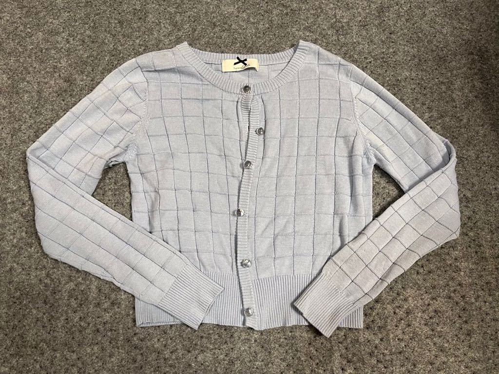 - Supreme.La.La. シュープリームララ 長袖カーディガン 上着ボレロ トップスカットソー 春パステルカラー 水色青ブルー ブロックチェック