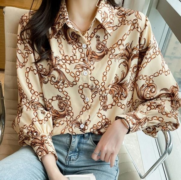 > PYD2373★S-XLサイズ♪レデ優雅で 超綺麗 シフォィーストップス ン 通勤大人 普段着 着痩せ 長袖 ブラプリント柄ウスシャツ