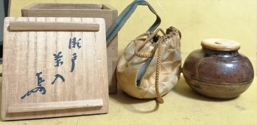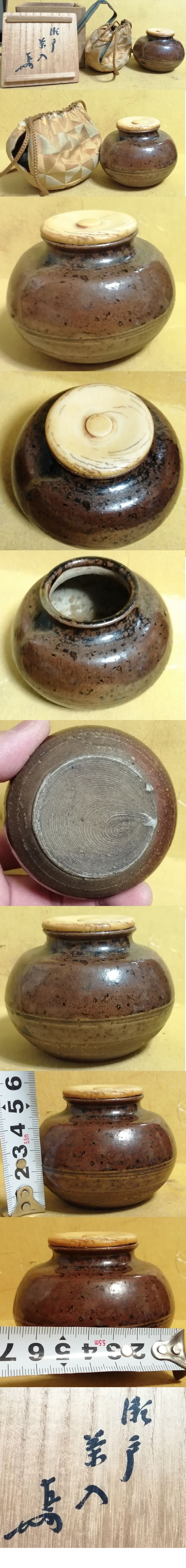 - 桃山時代 瀬戸 古瀬戸 茶入 即中斎書付 鑑定箱 仕覆 茶道具 保証品 共袋 古裂