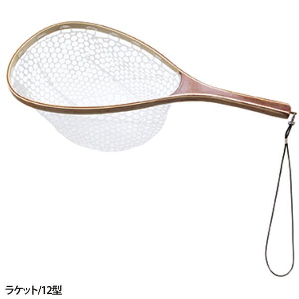 - ラバーランディングネット 12型 木製 ラケット型 M OGK フライ 渓流 手玉